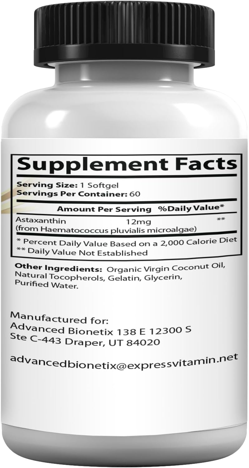 💊 High Potency: 12mg Astaxanthin per Softgel