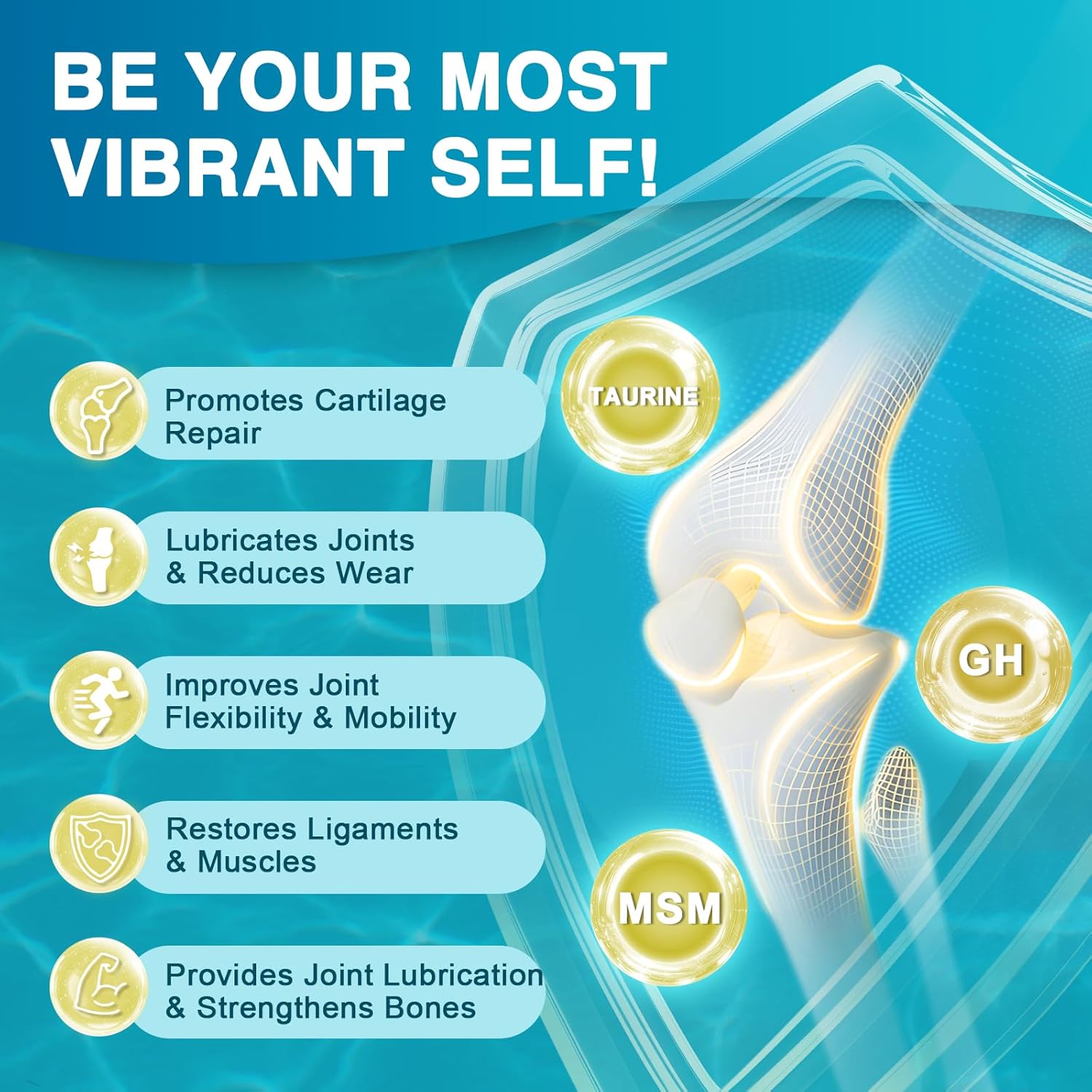 Collagen, Glucosamine, and MSM work together to strengthen joints and maintain cartilage.