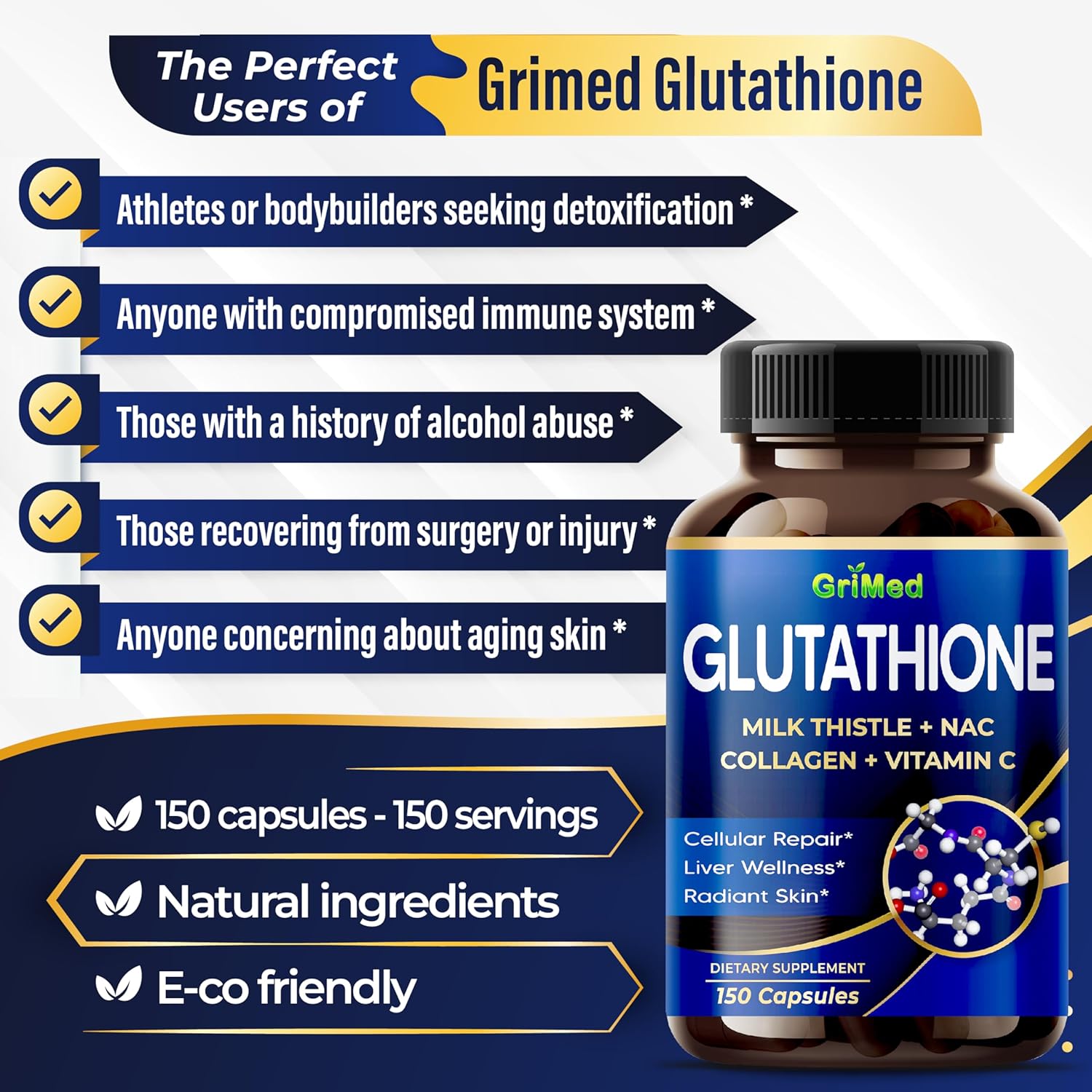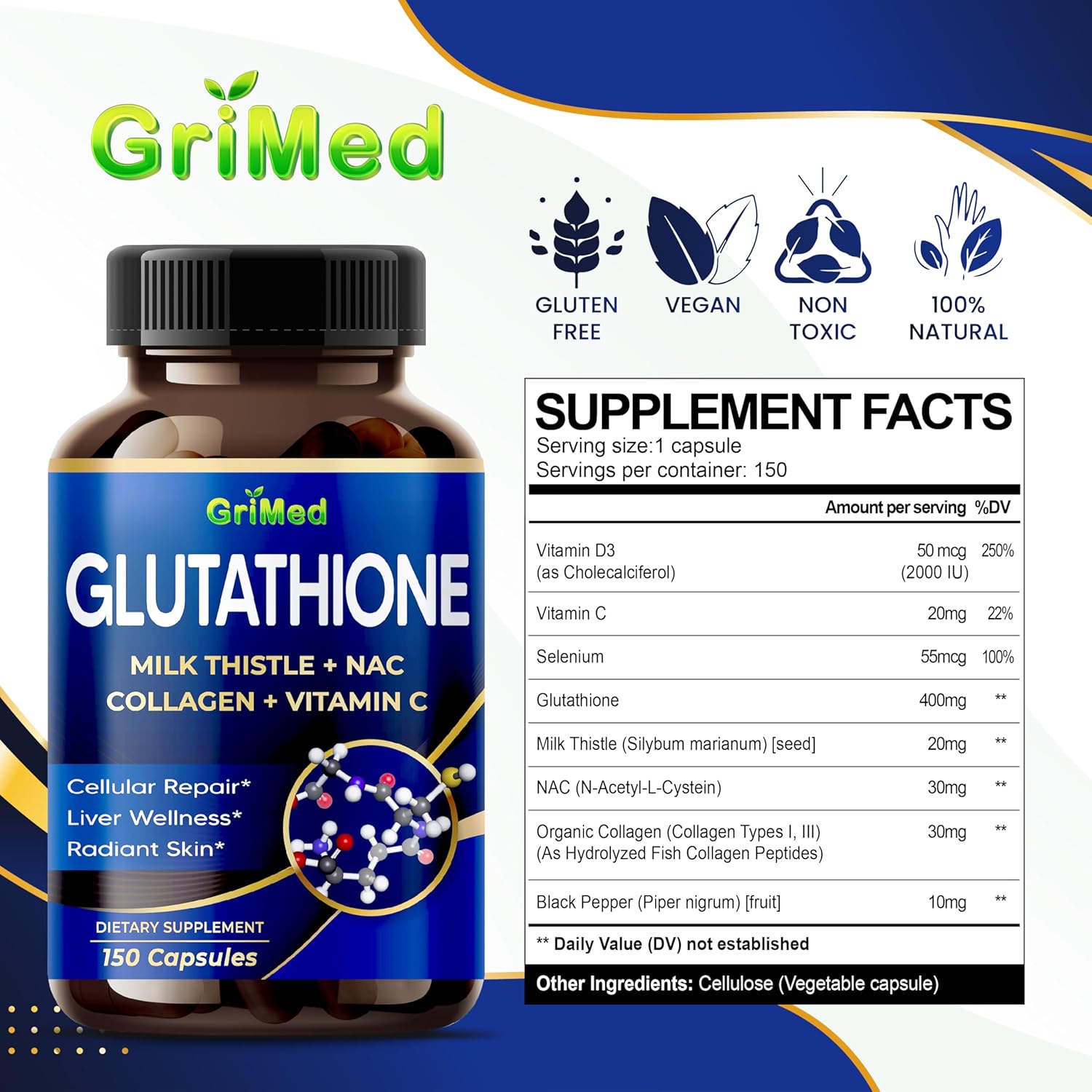 GriMed Glutathione Milk Thistle + Nac Collagen + Viamin C – 150 capsules