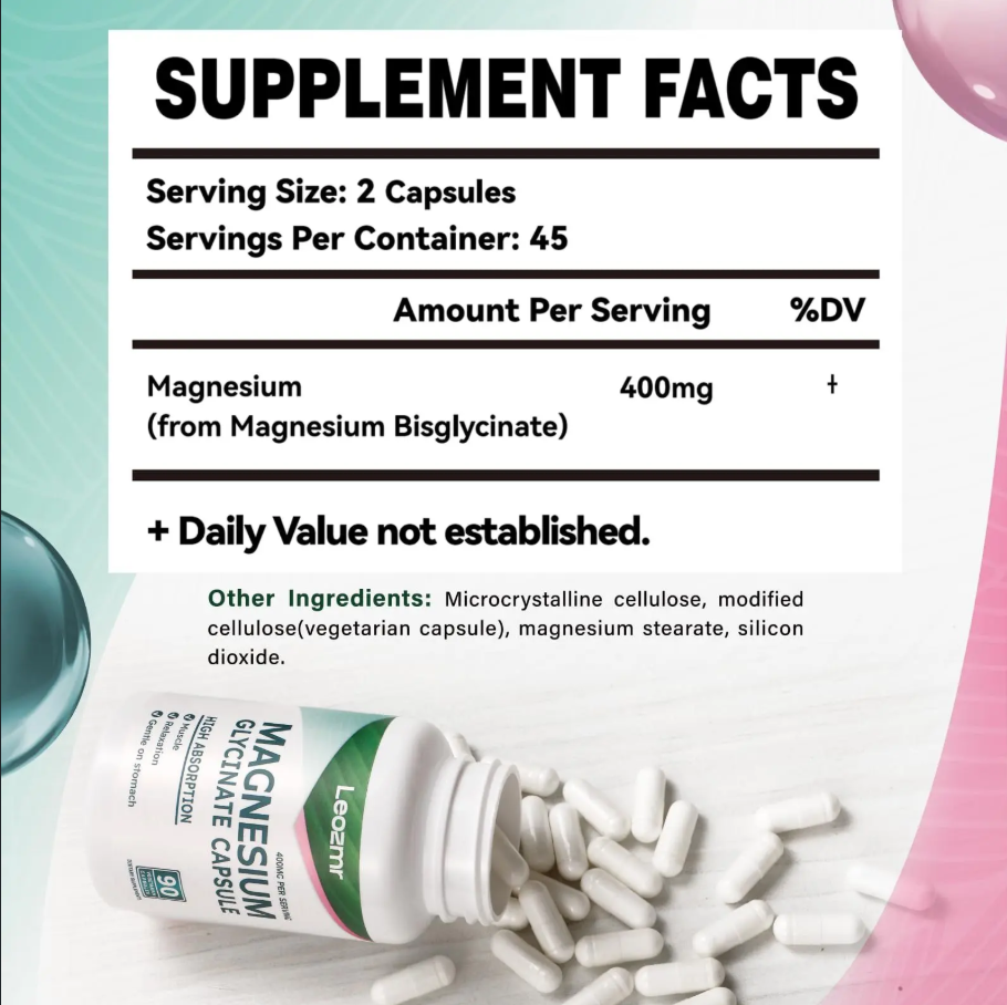 Leozmr Magnesium Glycinate (400 mg) – 90 vegetarian capsules