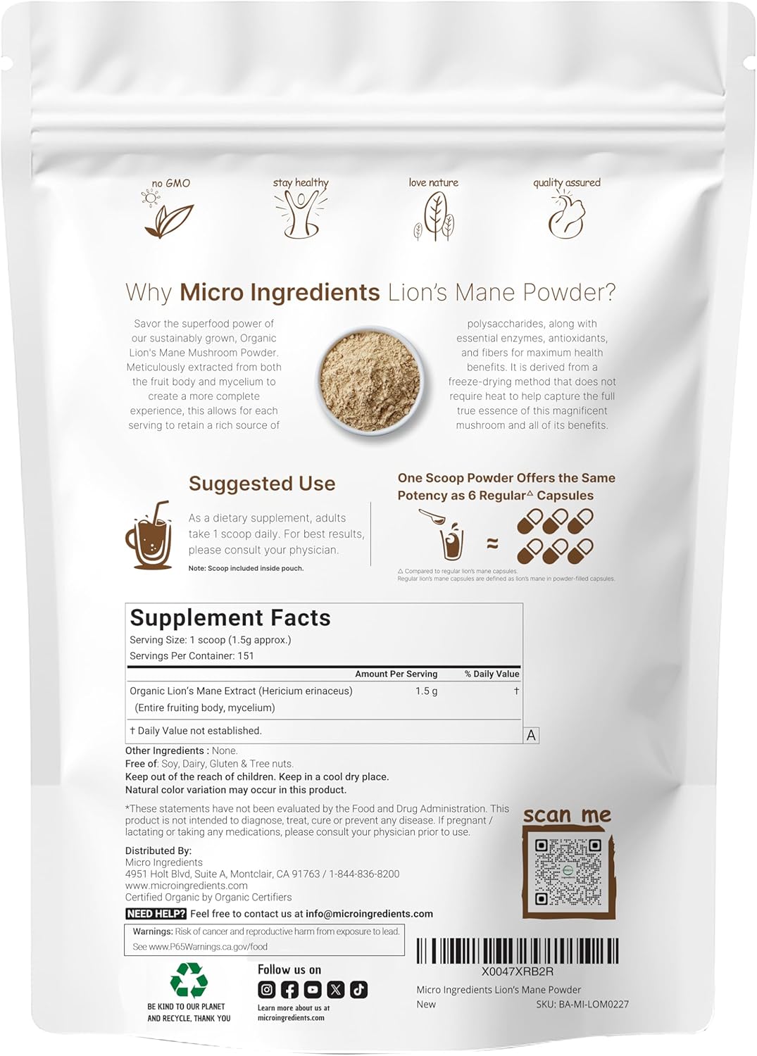 🍄 Micro Ingredients Organic Lion’s Mane Powder – 227 g
